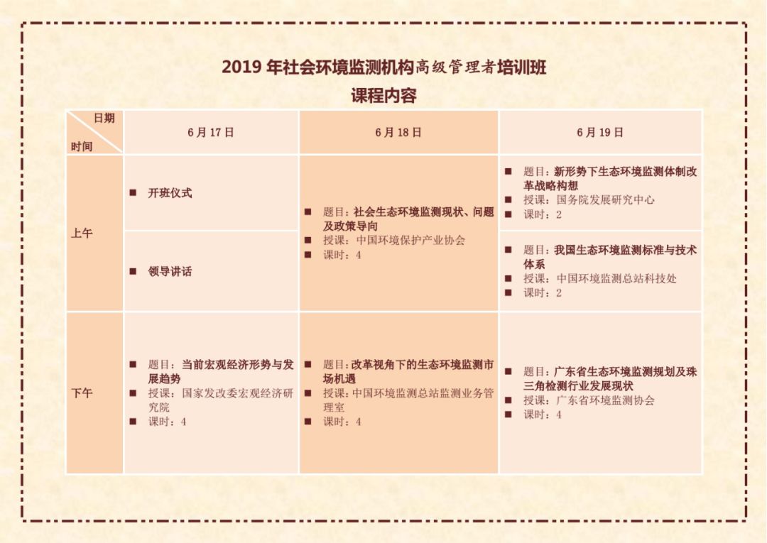 本次培训面向环境监测仪器设备研发、生产企业,环境监测运维服务提供商,环境检测机构,环境监测信息服务(大数据)供应商等社会环境监测机构的高级管理人员和中层管理人员,课程安排紧凑充实、内容丰富,课程设置接受往期参训人员的建议进行了优化升级和全面更新。